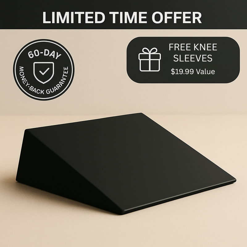 Cheaper foam or plastic wedges sink, slide, or aren’t wide enough for safe bilateral loading. Our board is fixed at 25°, full-width, and locked in place—exactly what your knees need.