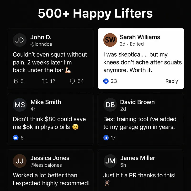 Users report regaining full squat depth with significantly reduced knee pain in just 3–6 weeks.